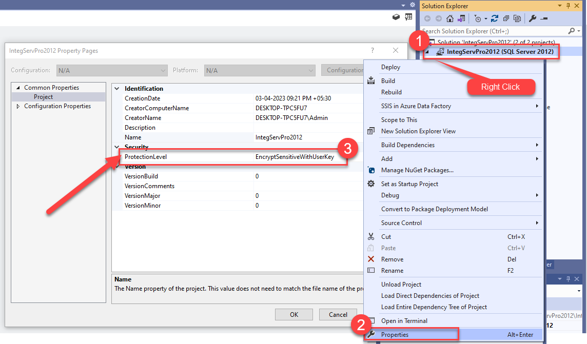Option 1: Set ProtectionLevel to EncryptSensitiveWithUserKey