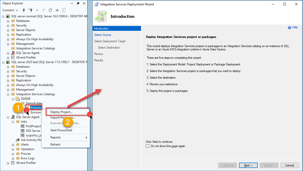 This guide walks you through installing SQL Server 2025 for development and deploying your SSIS package using the SSIS Catalog (SSISDB).