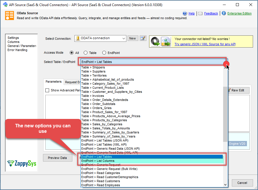 In this article, we review the latest improvement to the OData Connector available in the ZappySys SSIS PowerPack. This update introduces new metadata endpoints that make it easier to explore and understand OData services before building data extraction pipelines.