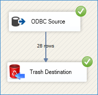 Drag and drop a destination component (in this case, trash destination), connect it to the ODBC Source, and run the package to view the results.